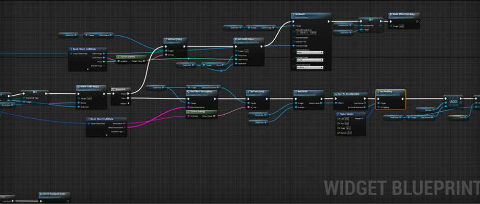 The outfit widget needed to update player stats appropriately and apply additional effects to the player such as an aoe upgrade and heal regen. Widget itself needed to be flexible to allow designers to add more outfits if needed.